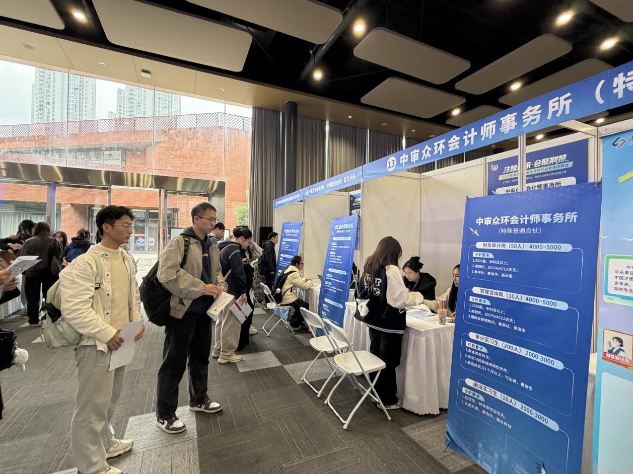 参访结束,在中南职梦辅导员工作室陈楠、杨柳两位老师的带领下,学生转到行业招聘会现场。学生手持简历,穿梭于各个展位之间,面对面与安永、德勤等国际“四大”及天健、容诚、天职等30家头部会计师事务所进行对接。有的在行业前辈指导下修改简历细节,有的围绕“审计实务操作”“职业发展空间”等话题与企业深入交流,现场气氛热烈而有序。多位同学表示:“这次招聘会让我们零距离接触职场,不仅明确了自身优势与不足,更找到了奋斗的具体方向。”