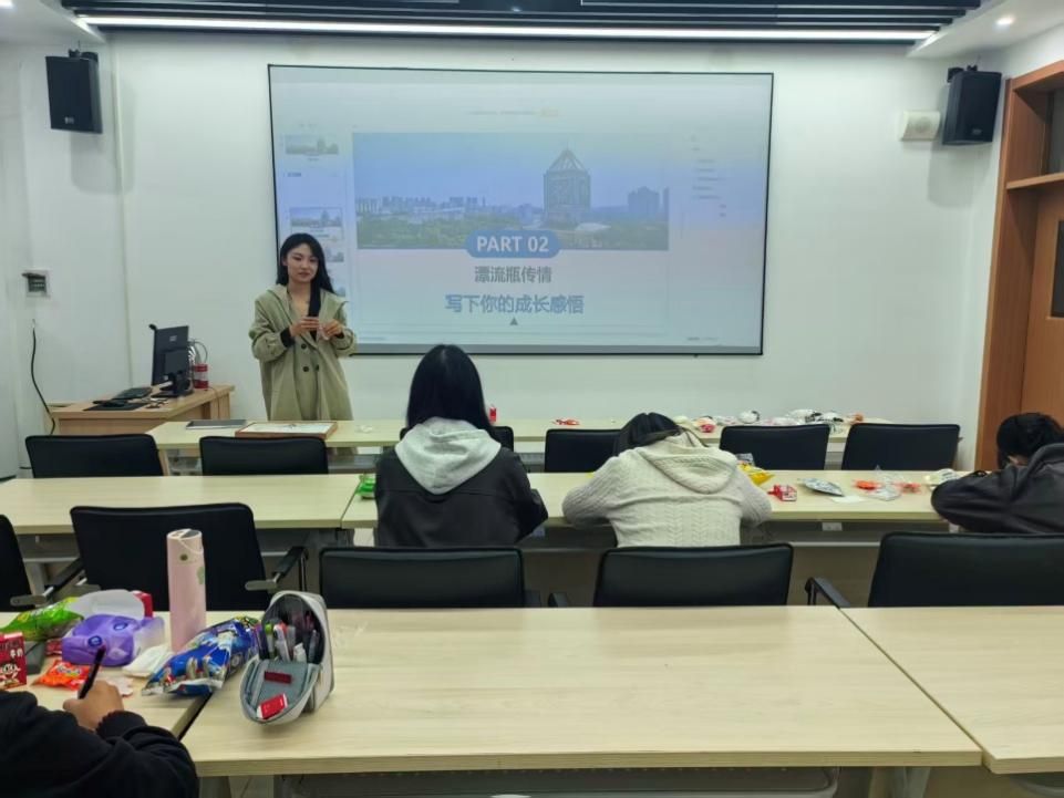 观影结束后,同学们在“漂流瓶传情”环节写下自己的感悟与思考,并通过“共绘成长树”留下彩色手印,象征每一位参与者的成长印记。现场还设置了互动分享与抽奖环节,多位同学踊跃发言,分享收获,赢取奶茶、学院定制周边等精美礼品。