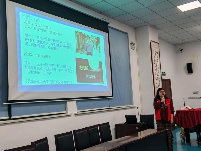活动伊始,老人们不仅分享了自己在短视频平台刷到的各类内容,还纷纷表达了对“这些视频是不是AI做的”的困惑。“这只猫真的在带小孩吗?”“这个湖到底在什么地方呀?”大家提出的这些问题,逗得老伙伴们哈哈大笑,也让他们对AI视频的制作方法越发好奇,想一探究竟。