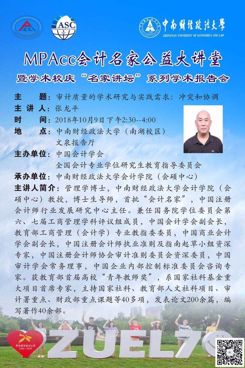 MPAcc会计名家公益大讲堂暨学术校庆“名家讲坛”系列学术报告会