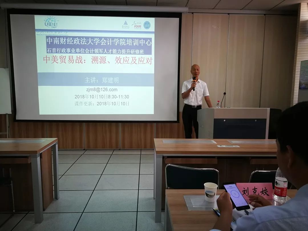 开班仪式后,紧张的学习便拉开了序幕。培训中心选派了朱巧玲教授、杨国超副教授、王银梅教授、孟祥兰教授、王清刚教授、王金秀教授、刘宗劲副教授、刘可风教授、张颖洁经理等分别就十九大与“一带一路”倡议、政府会计改革及会计准则解读、政府会计制度及新旧衔接、大数据背景下经济数据挖掘分析、行政事业单位内部控制与风险管理、单位运行成本及经费管理、管理沟通与团队建设、儒家管理理念与会计伦理、用友政务系统应用讲解等专题作了精彩授课,本次培训还邀请了首都对外经济贸易大学国际商学院的郑建明教授就《中美贸易战:溯源、后果与应对》主题作了专题讲座。