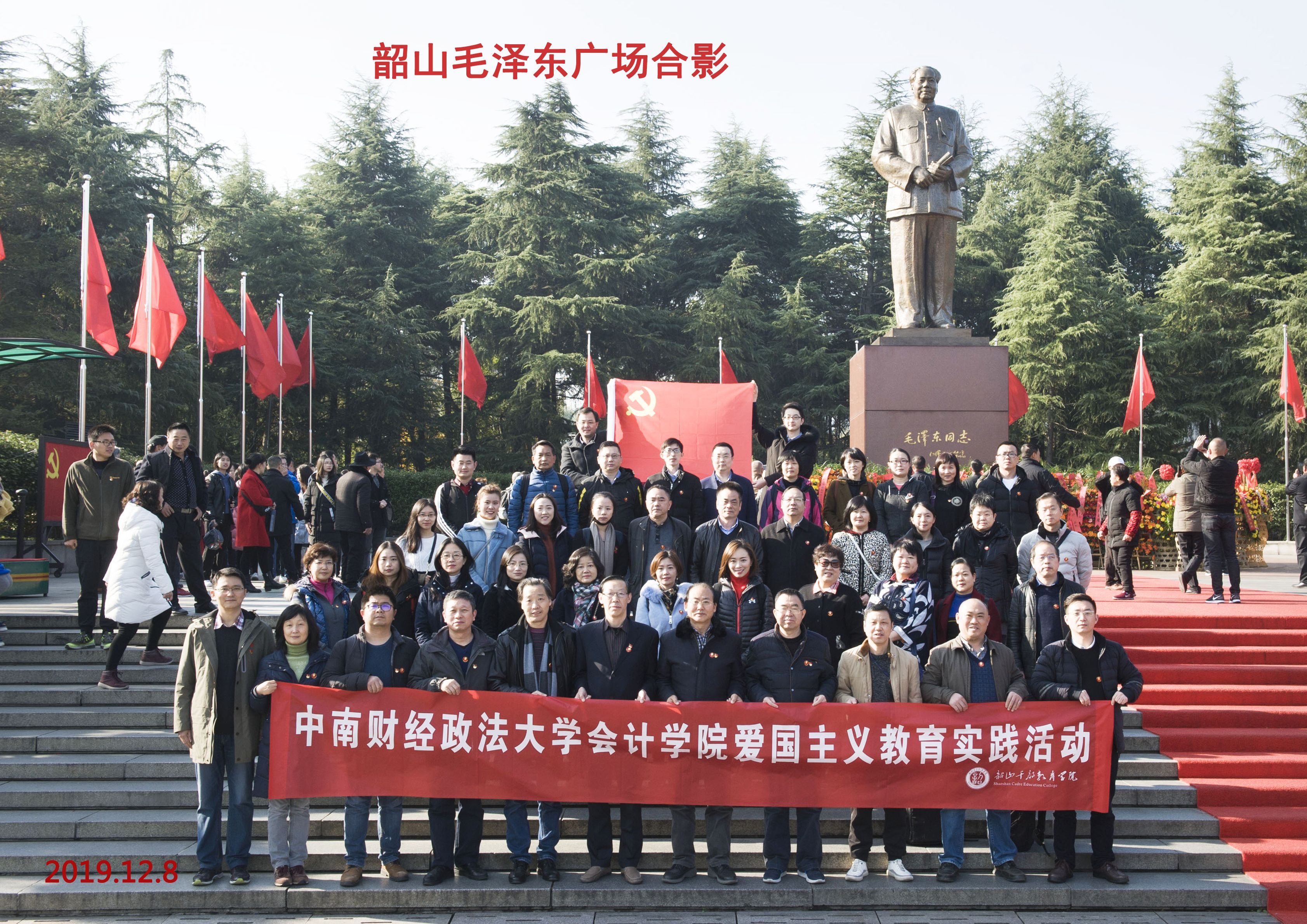 (通讯员 徐会超 曹运波)为深入学习贯彻习近平新时代中国特色社会主义思想和党的十九大精神,进一步坚定理想信念,学习老一辈无产阶级革命家的崇高风范和高尚品德,推动会计学院全国党建标杆院系建设和“三全育人”综合改革试点建设,2019年12月7日-8日,在院党委书记殷修林、院长张敦力、院党委副书记王延的带领下,会计学院组织全院教职工党员、民主党派和群众代表赴长沙、韶山开展爱国主义教育实践活动。