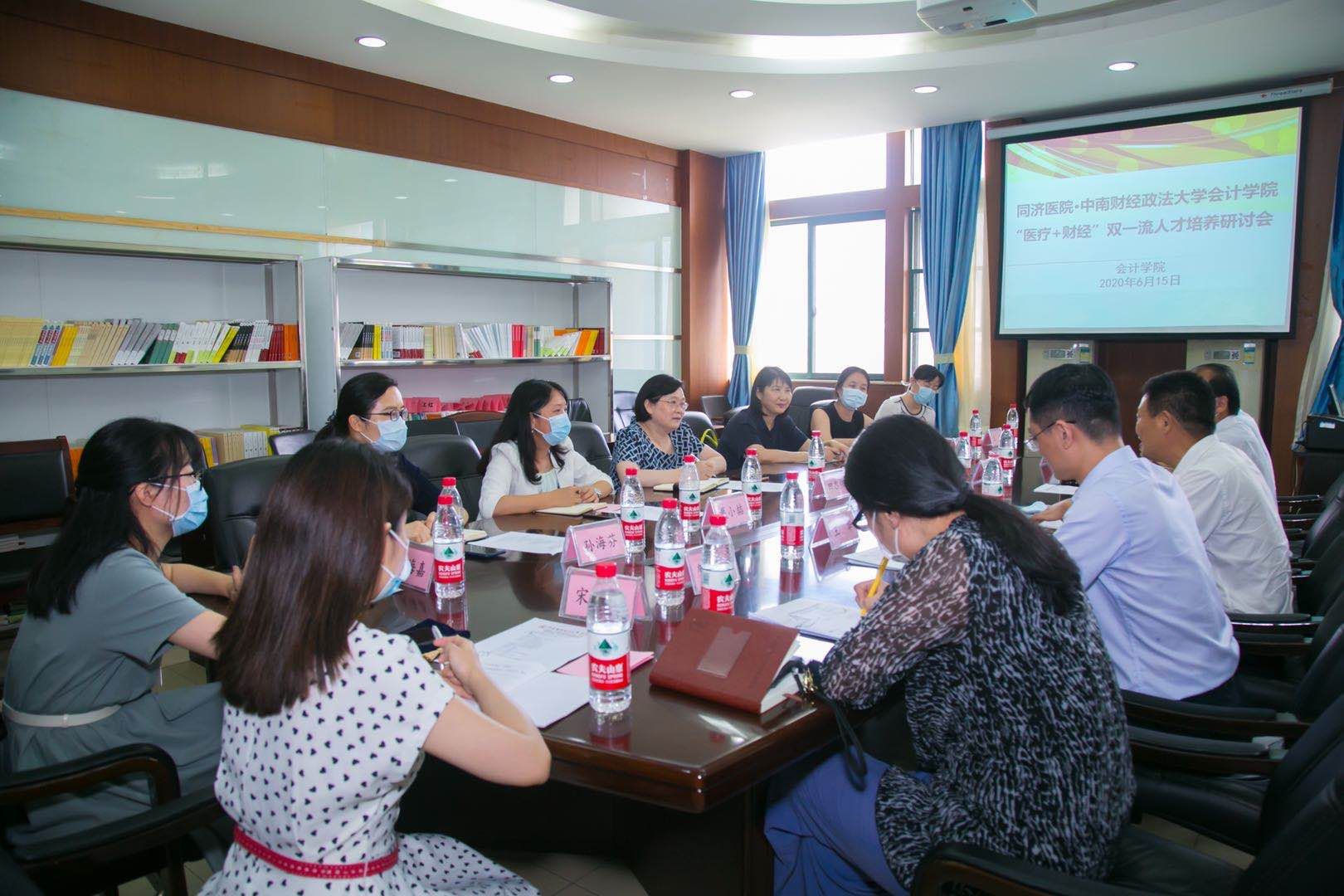 (通讯员:畅雅莉) 2020年6月15日下午,同济医院院长助理、总会计师田志伟,财务处处长史金秀,财务处副处长戴小喆,财务处会计科科长董登姣,财务处国资办副科长孙海芬,财务处会计科副科长王宇,财务处财务管理科科员宋源、朱海嘉一行莅临会计学院,与我院联合举办了“医疗+财经”双一流人才培养研讨会。会计学院院长张敦力、党委书记殷修林、副院长王华、党委副书记兼行政副院长徐会超、成本管理教研室贺欣副教授及相关工作人员参会。会议由王华主持。