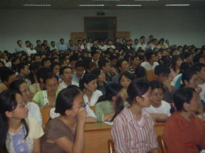 不到7点能容纳360多人的教室被来自会计学院、金融学院、自修学院以及研究生部的毕业生挤得水泄不通。来自湖北省人才市场人力资源部的董向荣老师一进来就受到了同学们的热烈欢迎。讲座主要由四个部分组成,董老师分别就简历、求职信、面试技巧、面试心理等方面给予了很多富有建设性的建议。如求职信要针对招聘企业的特点有的放矢,详略得当,重点突出;面试时要注意细节,自信且注意仪表等。讲座最后进行的现场模拟面试环节将讲座的气氛推向了高潮,同学们反响热烈。