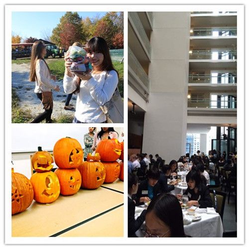 课余时间里学校里面有各种各样的活动。官方组织的活动有,学校最热闹的社团招新,各个高校之间进行的体育竞赛,和学校为我们MSA项目安排的欢迎会,户外拓展,芝加哥之行等。除此以外,还有学生自行组织的活动,比如到农场摘苹果,为庆祝万圣节的各种化妆派对和南瓜雕刻等文化活动。
