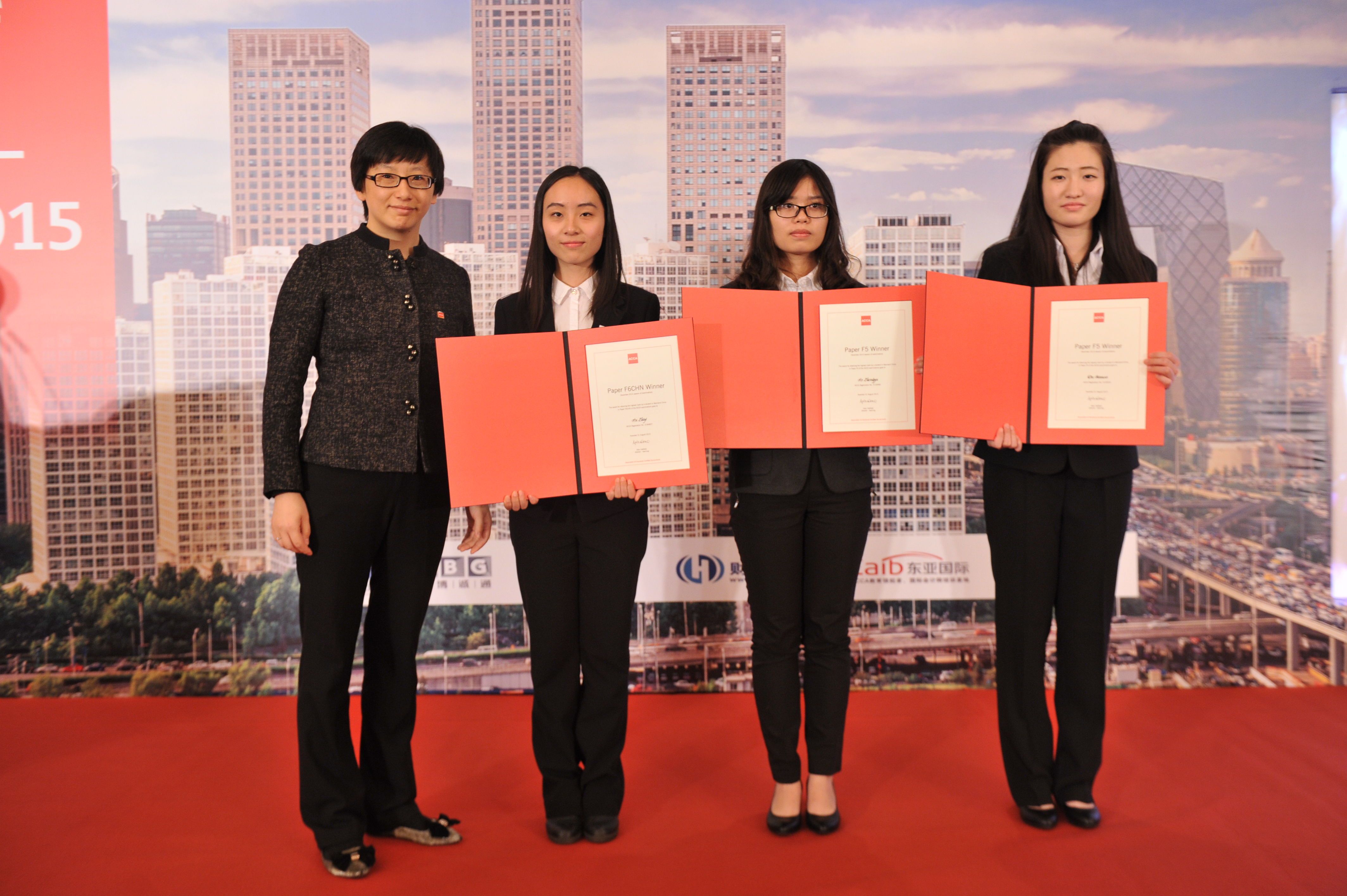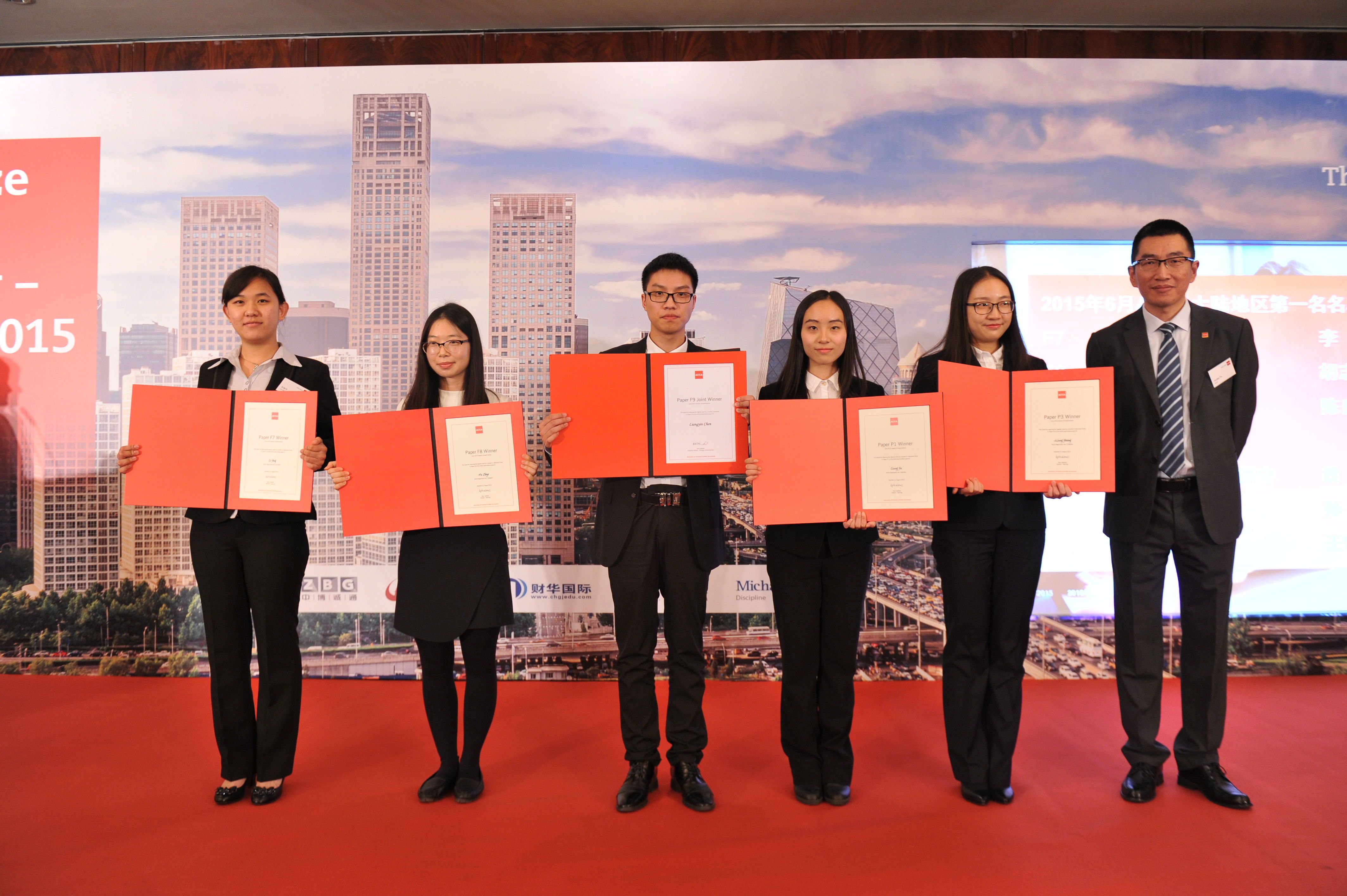 ACCA北京代表处首席代表于翔天先生为F7-P3单科大陆第一颁奖(胡智怡右3)