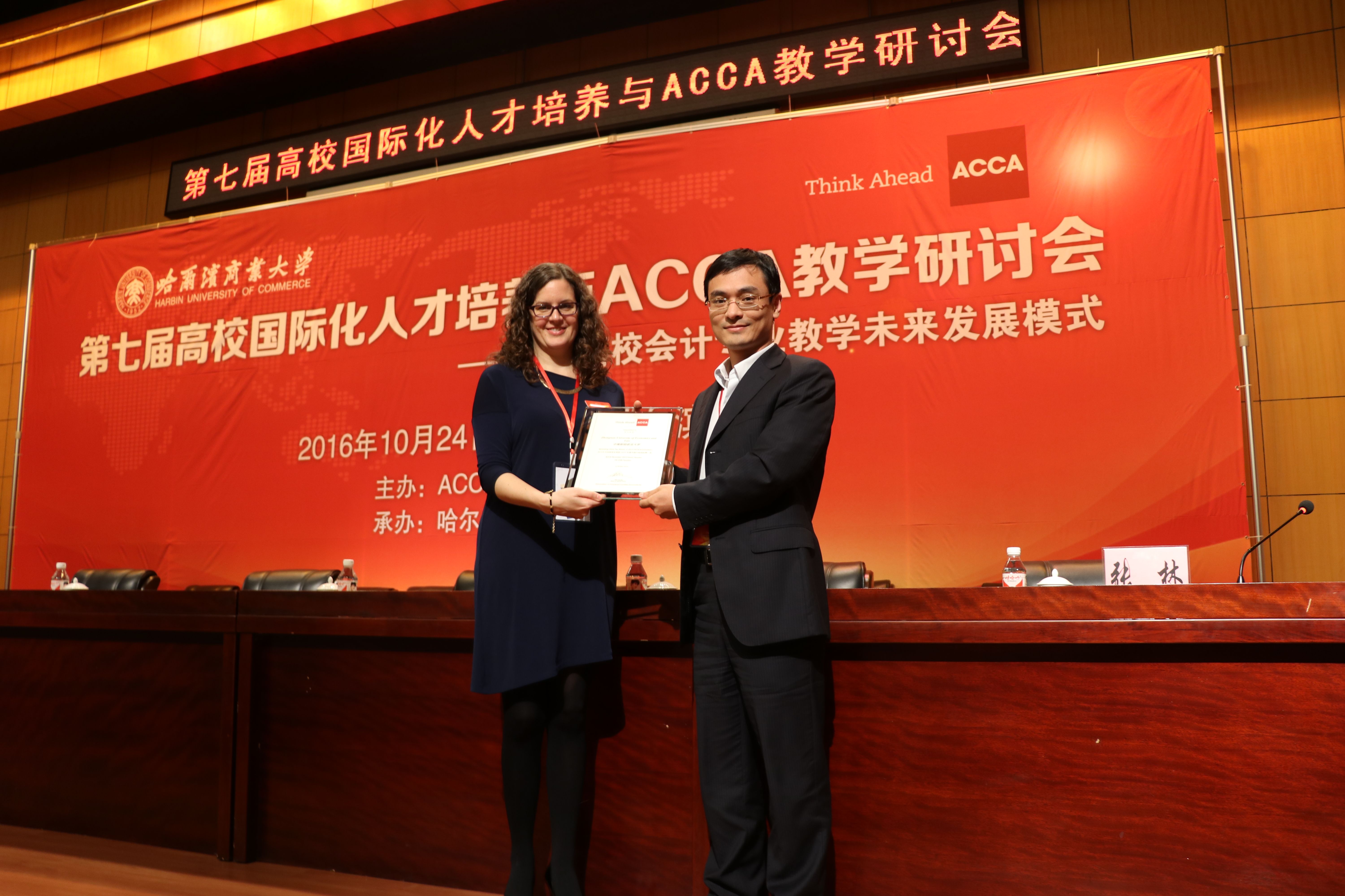 2016年10月24-25日,ACCA主办的“第七届高校国际化人才培养与ACCA教学研讨会”在哈尔滨商业大学举行,来自全国70余所开办ACCA班的高校参加了教学研讨会。受学院委托,会计学院副院长王华应邀参加了会议。