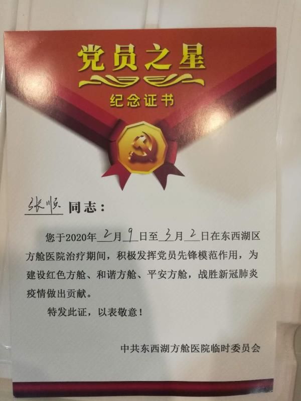 会计学院2009届毕业生张顺在确诊新冠肺炎后,住进了方舱医院。在护士长的号召下,与其他9名病友一起,加入了临时党小组。小王一直发挥党员先锋模范作用,在身体允许的情况下,为病友们提供帮助。提醒他们注意卫生,帮助送餐,安慰病友,为他们打气,欢送痊愈的病友们。她的事迹得到了中共东西湖方舱医院临时委员会的表彰。3月2日,张顺病愈出院,将于指定地点继续隔离。