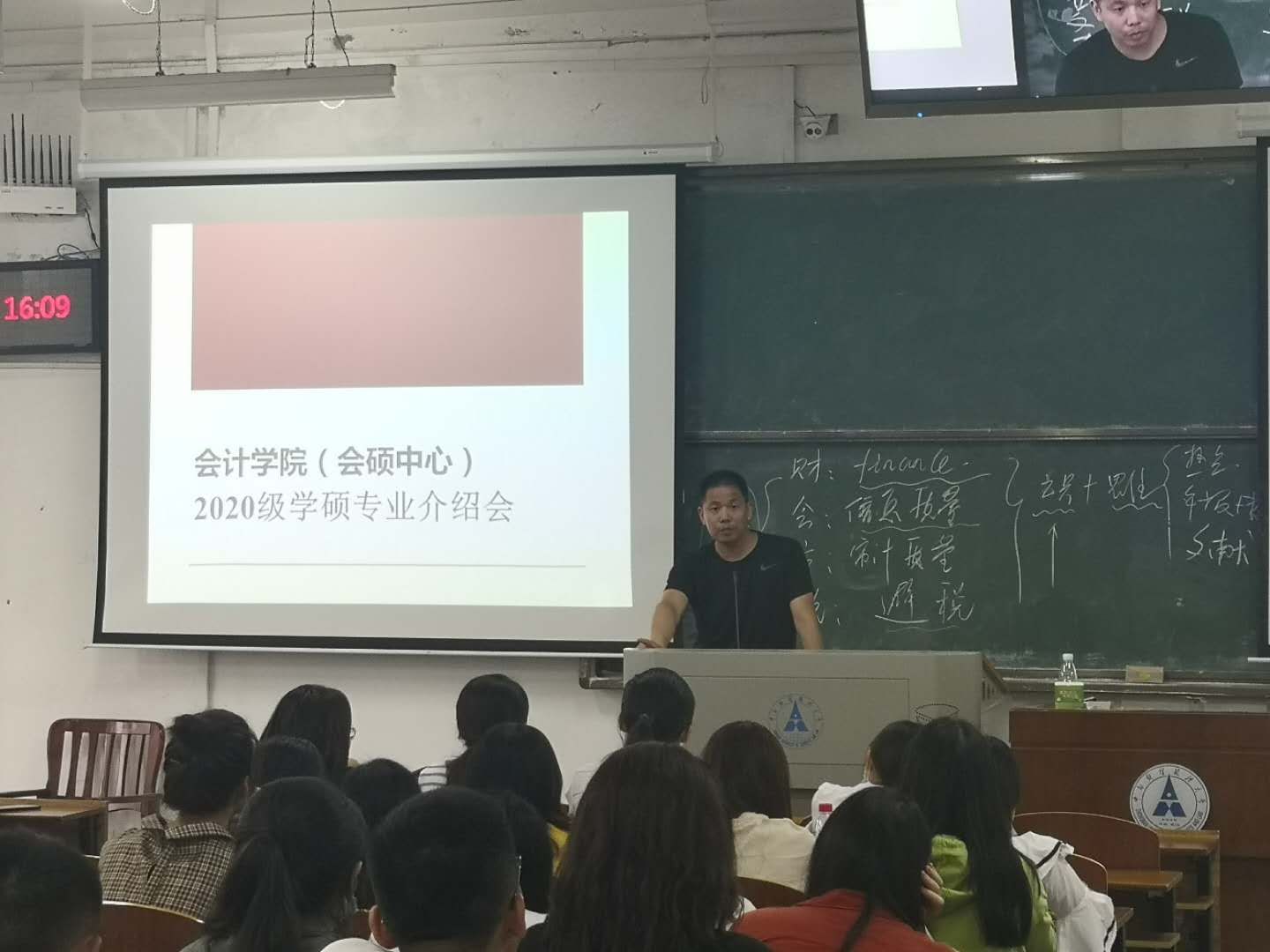 2020年9月10日下午,在教师节之际,会计学院(会硕中心)在文澜楼111顺利举行了2020级硕士研究生开学典礼暨专业介绍会。会计学院副院长王昌锐教授,学硕导师组组长邓伟副教授、刘继红副教授,专硕导师组组长宋丽梦副教授、陈丽红教授、季华副教授莅临本次会议。会议由副院长王昌锐教授主持。