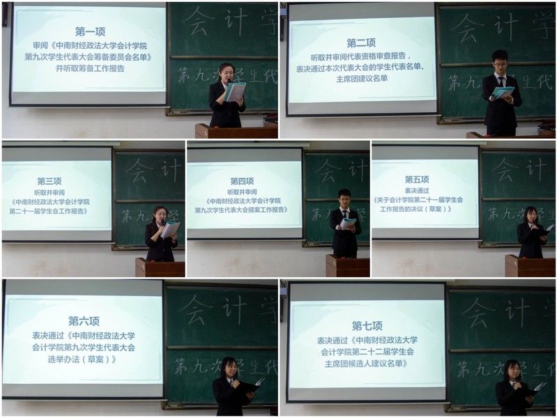 会议第五、六项,学生代表表决并通过《关于会计学院第二十一届学生会工作报告的决议(草案)》、《米兰电竞·(中国区)会计学院第九次学生代表大会选举办法(草案)》。