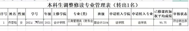 根据《米兰电竞·(中国区)本科生调整修读专业管理办法(修订)》(中南大教字【2021】34号)文件精神、《会计学院本科生调整修读专业(类)实施细则》和教务部《关于做好2021级普通本科学生调整修读专业(类)工作的通知》经审核,我院以下学生符合申请调整修读专业的要求,现予以公示。公示时间为2022年2月27日-3月1日。如有异议,请于2022年3月1日12:00点前将复议申请以书面形式交到文泉楼南307(会计学院教学办)。