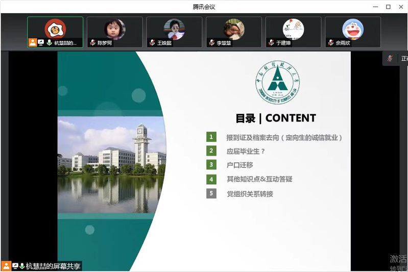5月12日晚7点,会计学院2020级审硕通过腾讯会议平台,开展“在青春的赛道上奋力奔跑”毕业生主题教育暨派遣知识培训会,培训会由研究生辅导员杭慧喆主持。