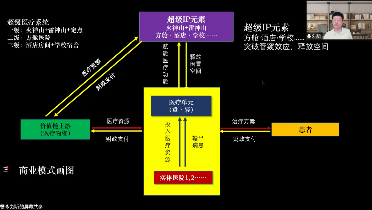 最后,刘圻教授为同学们分享了武汉对新冠肺炎疫情的应对策略复盘,从商业角度分析新冠肺炎疫情“黑天鹅”事件,强调方舱医院在基础医疗建设方面的重要性,方舱医院的建设反映出管理者从存量管窥思维到增量线性思维的转变:火神山、雷神山等重资产和方舱、酒店隔离点等轻资产形成了超级医疗系统,被赋予了医疗功能,释放闲置空间;从另一角度来看,武汉新冠肺炎疫情的应对策略凸显出资产变异性。