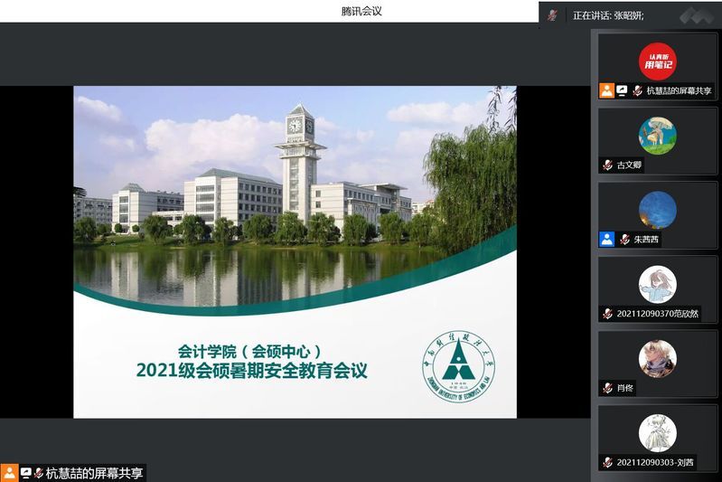6月28日晚19:30,会计学院线上召开2023届会计专硕暑期安全教育暨就业动员大会,对学生开展暑期安全教育、毕业材料要求讲解、就业基础知识和技能培训,吹响毕业季“集结号”。