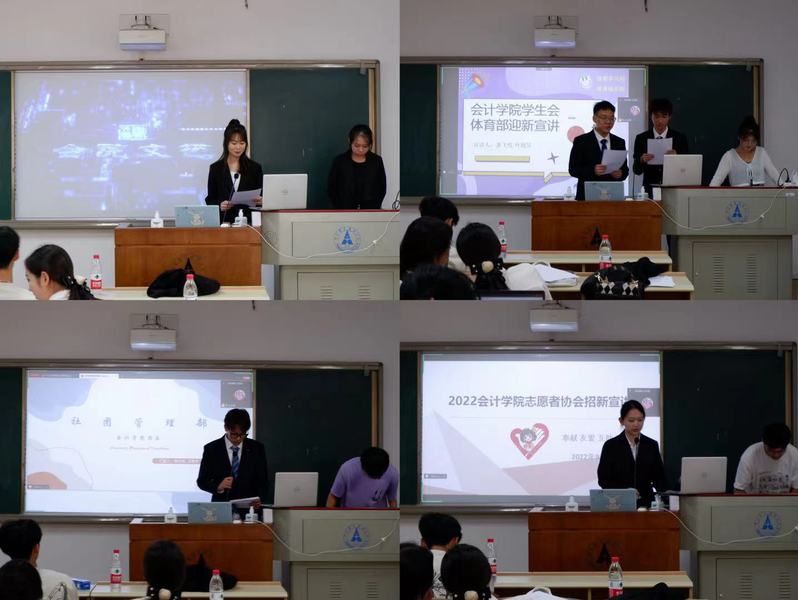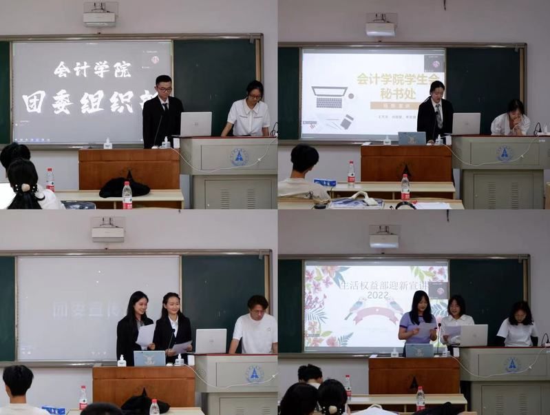 本次宣讲会由会计学院学生会主席团成员岳馨语主持。宣讲开始,由会计学院学生会执行主席苗书源发言,他首先向新同学介绍会计学院团学志的组织架构及各部门的职能分工,并分享自己加入创业联络部的相关经历,希望新生认真对待招新,谨慎做出选择。最后,他表明会计学院团学志是新生展现自我、提升能力的良好平台,祝愿各位学子能在团学志这个大舞台上有出色的表现。