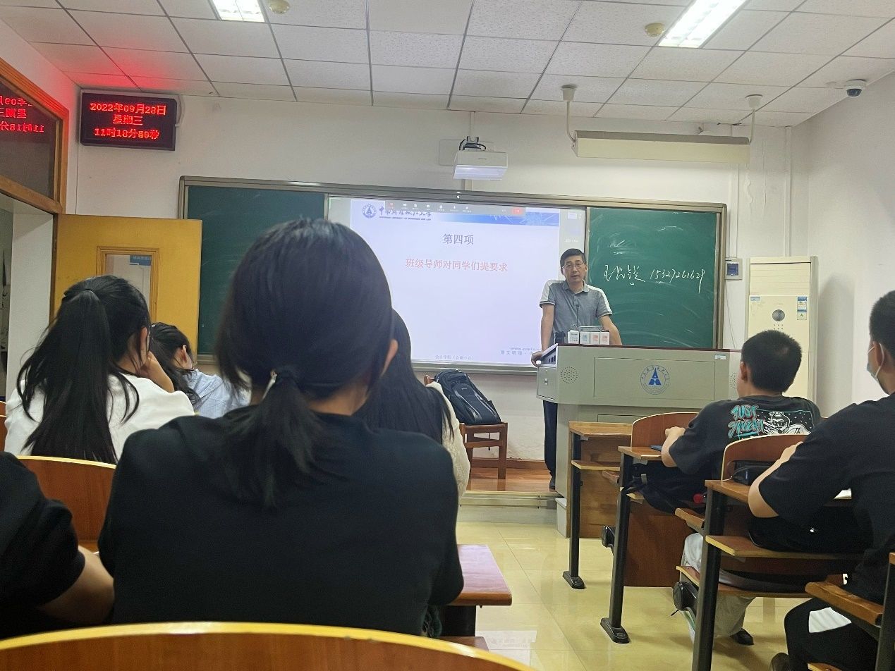 最后,班级导师对同学们提要求。王昌锐老师从会计学院的院系组织架构,以及第三学期将进行的专业分流等为核心,强调同学们在大一必须尽快适应大学的学习和生活,尽快确立明确的学习目标,在大一养成良好的学习习惯,做好大学职业规划,未来进一步提升学历学位的计划。王昌锐老师尤其针对大学学习生涯规划,重点强调组织纪律性,不迟到不早退,尤其对挂科现象进行强调,让刚刚踏入大学学习旅途的新同学们提高对学习的重视,遵守制度,将学习放在首位。