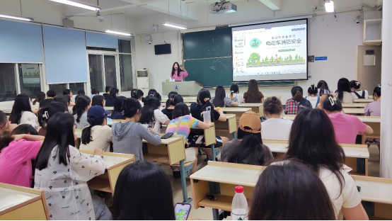 最后,王老师向大家介绍了电动车安全的防范措施以及电动车消防安全常识。通过本次讲座,同学们提高了电动车安全的思想认识,加强了思想警惕性。