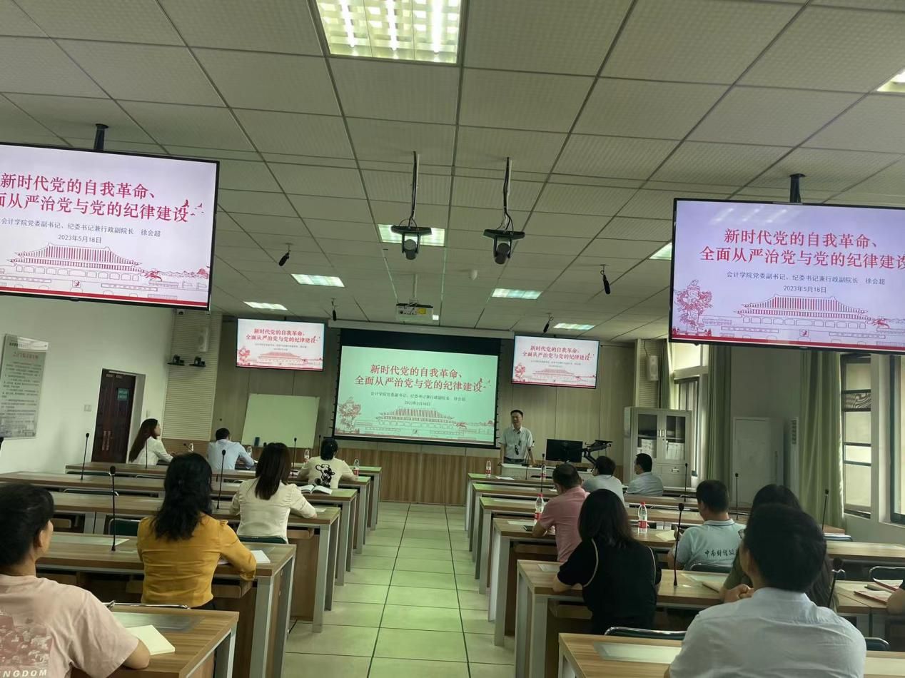 院党委副书记徐会超还主讲了专题党课《新时代党的自我革命、全面从严治党与党的纪律建设》。他从党的自我革命与新时代十年的伟大实践、全面从严治党伟大战略和党的纪律建设等三个方面开展讲解,通过相关案例分析介绍了严守党的纪律的重要性。他表示,全面从严治党是新时代党的自我革命的伟大实践,开辟了百年大党自我革命的新境界。党的纪律建设是全面从严治党和党的自我革命的关键,提供了制度保障和遵循。