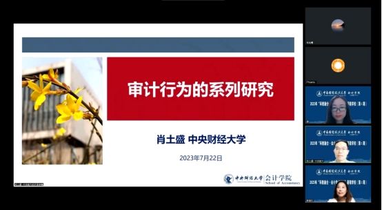 (通讯员 桂明霞)为进一步提升学院研究生的科研素养及科研方法,及时分享国际和国内最新实证会计研究前沿,会计学院于2023年7月20日-7月23日以线上授课的形式举办2023年“科教融合·会计学术研究”暑期学校(第二期)。22日上午和下午,中央财经大学会计学院教授、博士生导师,管理会计系主任,中国管理会计研究与发展中心执行主任,中央财经大学“龙马学者”青年学者,康奈尔大学和香港中文大学访问学者肖土盛教授以《审计高质量发展与企业数字化转型的系列研究》为主题,为我们带来了一场高水平学术讲座,米兰电竞·(中国区)会计学院副院长、湖北省人文社科重点研究基地“注册会计师行业发展研究中心”执行主任陈丽红教授和何捷副教授共同主持会议。
