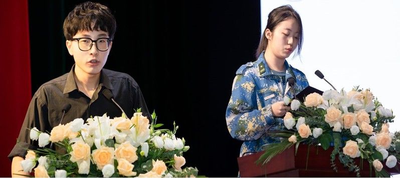 老生代表ACCA2001班傅泊森,新生代表会基2301班何慧美依次上台发言。傅泊森从个人经历出发,希望新生勇敢把握机遇,锚定长远目标,努力成为价值的塑造者。何慧美引用《格言联璧》号召大家虚心求知、坚定梦想、勇担使命,传承、创新和发展中国会计学科理念。