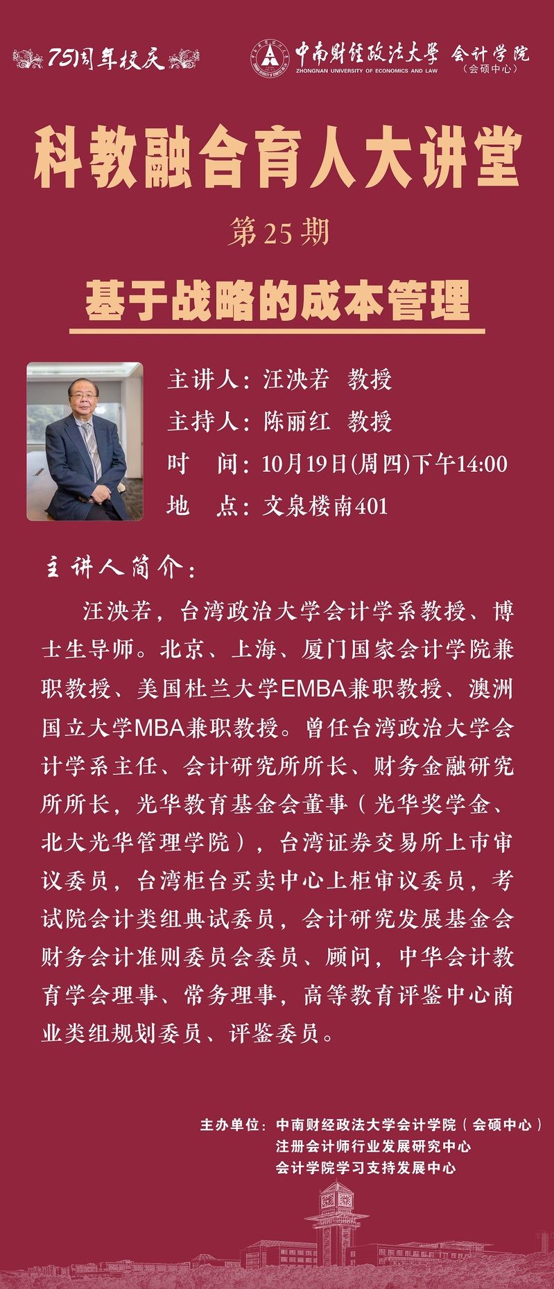 本次我们诚挚邀请台湾政治大学会计学系汪泱若教授作为主讲嘉宾,为我们带来第25期科教融合育人大讲堂。