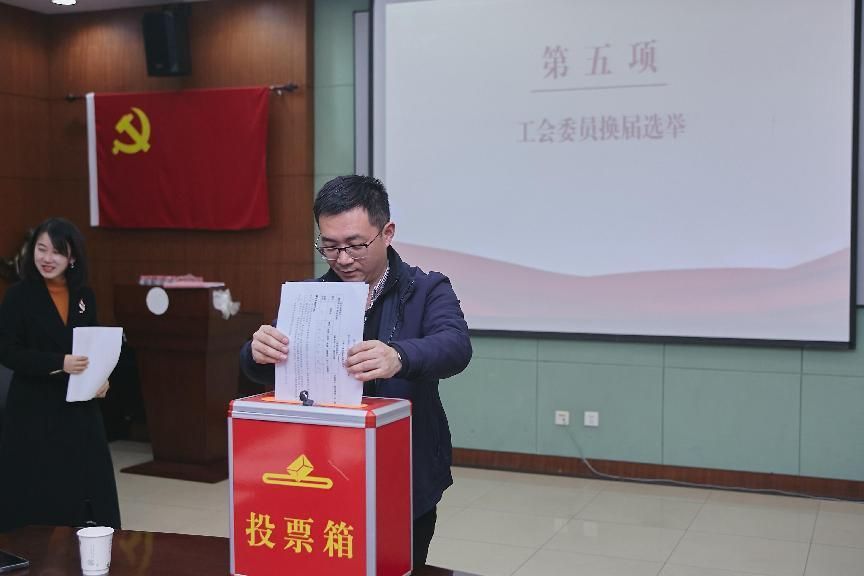 会议第五项议程,会计学院工会委员会换届选举,全体工会会员进行投票,并由工作人员当场计票。