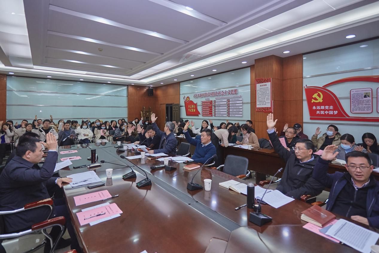 院党委书记周勇主持进行现场表决,与会教职工通过举手表决的方式,一致通过《会计学院2023年度工会(教代会)工作报告》。