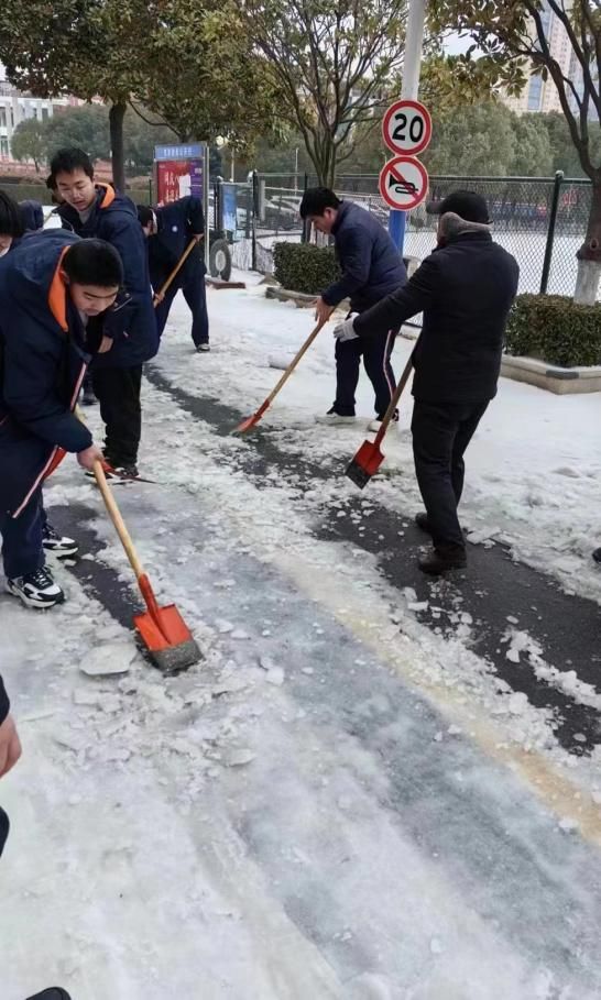 会基2101班彭瑀珩同学在云梦县梦泽大道和云梦第一高级中学参与清扫积雪志愿活动。