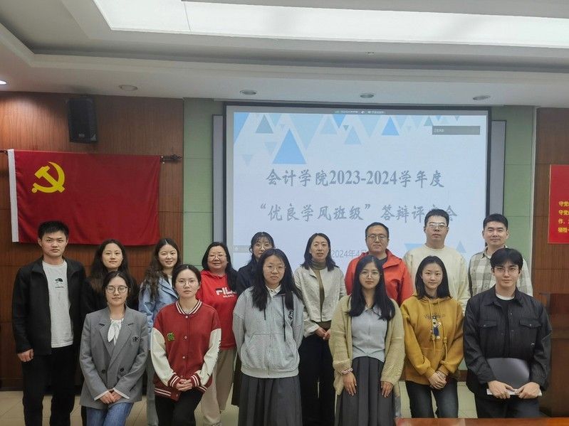 3月和4月是我校“学风建设月”,为树立先进典型、涵养优良学风、充分发挥榜样示范作用,4月8日,会计学院于文泉楼南401会议室举行2023-2024学年年度“优良学风班级”答辩评审会,校学习发展中心刘微、郭小义,就业指导服务中心张晶,以及会计学院全体本科辅导员出席会议。