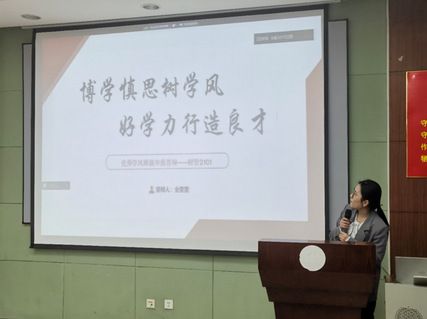 首位答辩选手是财管2101班学习委员全雯雯。她介绍财管2101班在辅导员胡牧孜和班导陈霞老师的带领下,来自五湖四海的同学齐聚财管一班,互相扶持,共同成长。班级在思想与学风方面工作突出,同学们积极参与志愿活动和社会实践,形成了班级昂扬积极、博学笃志的学习风气。