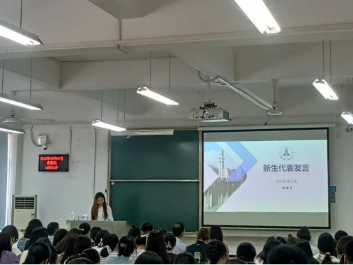 紧接着,2023级硕士生韩明月代表新生发言。韩明月同学表示研究生学习是追求知识、探索学问的过程,也是逐梦青春、追求自我的过程。同学们要以积极主动之姿,实事求是,恪守学术规范,诚信科研;大量输入,从经典到前沿,阅读专业领域相关文献;持续输出,坚持写作,以前辈理论应用于自我创作,更要有批判性思维敢于适应敢于批判,静下心来,砥砺奋进,将家国情怀融入到学术思想之中。