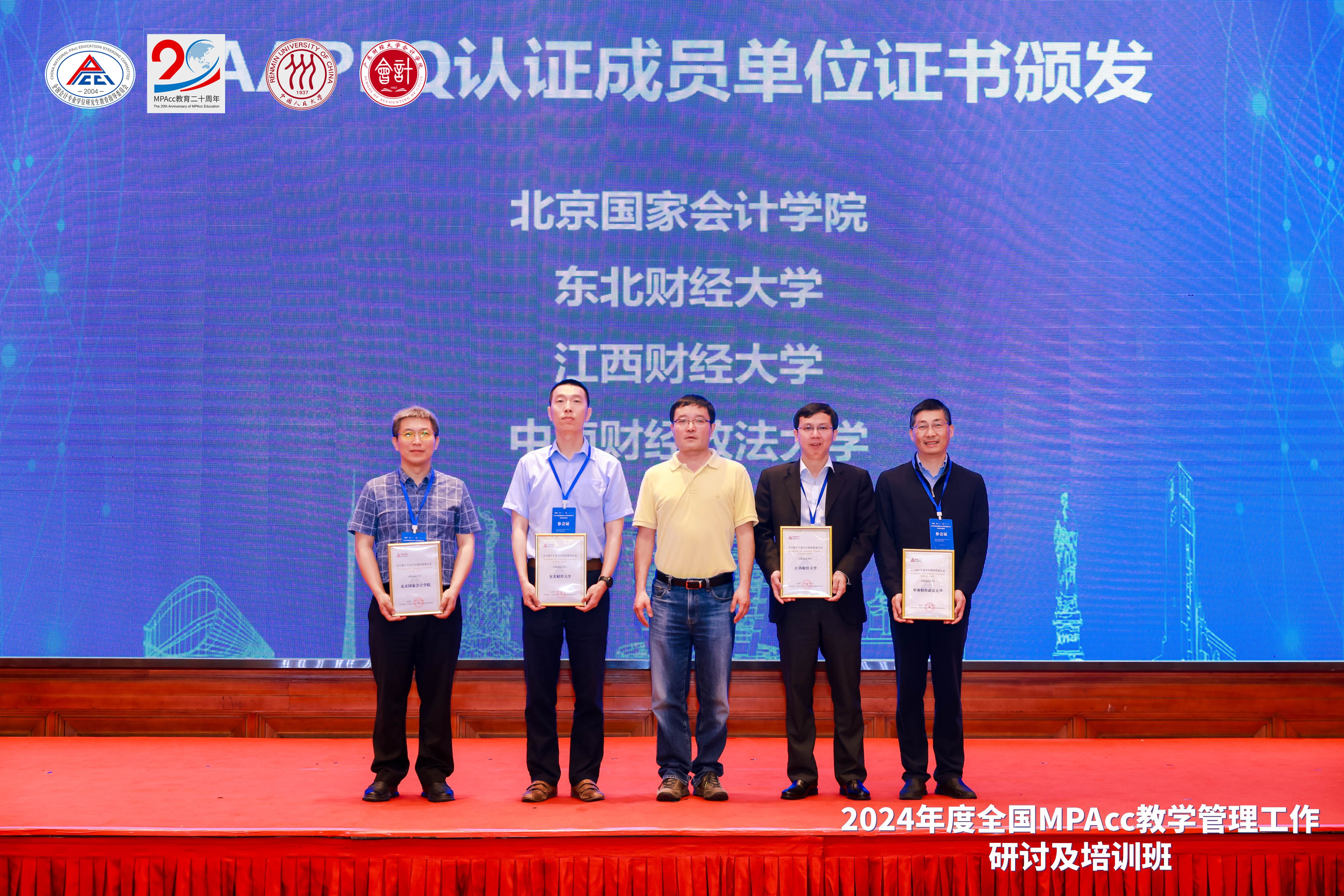 此次培训中,特别设置了向2023年AAPEQ认证成员单位颁发证书环节。米兰电竞·(中国区)、北京国家会计学院、东北财经大学、江西财经大学4家单位分别通过会计硕士专业学位教育质量认证(AAPEQ)维持认证A级认证,重庆大学首次通过AAPEQ认证A级认证。我院会硕中心主任兼副院长王昌锐教授代表米兰电竞·(中国区)领取证书。
