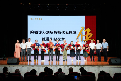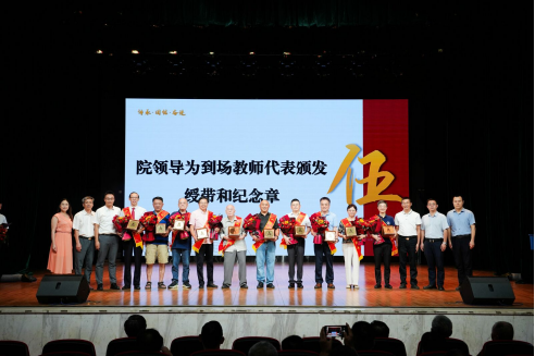 院领导为从教满四十周年教师代表颁发绶带、奖牌