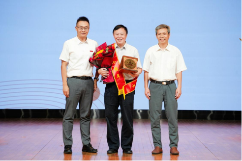 张琦院长和周勇书记为罗飞教授颁发绶带和奖牌
