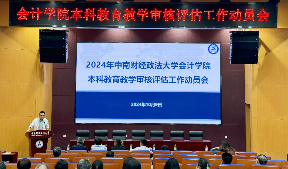 为全面迎接本科教育教学审核评估,进一步推动迎评工作扎实开展,10月9日下午,会计学院在文瀚楼北报告厅召开本科教育教学审核评估迎评工作动员会。会计学院院长、党委副书记张琦,院党委书记周勇,会硕中心主任兼副院长王昌锐,院党委副书记、纪委书记兼行政副院长黄波,副院长冉明东、陈丽红以及学院全体教职工参加会议,会议由周勇主持。