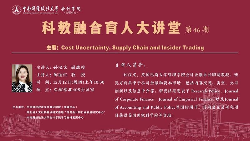 本次我们诚挚邀请英国巴斯大学管理学院孙汉文副教授作为主讲嘉宾,为我们带来第46期科教融合育人大讲堂。