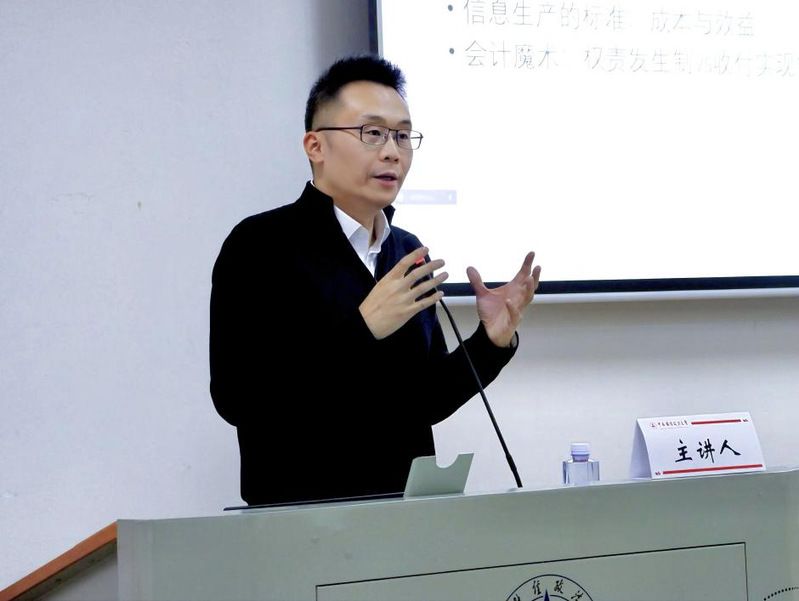 活动伊始,张琦院长以风趣幽默的互动方式引出本次讲座的核心主题——“何为会计”。他深入浅出地讲解了会计的本质和社会作用,围绕决策支持、信息成本降低、信息精准反映、成本效益权衡、权责发生制和收付实现制原理等要点,结合生活实例与企业案例,用三组会计学常见恒等式,通俗易懂地向大家讲解了什么是会计学。师生们深刻认识到,会计不仅是记录和报告财务信息的工具,更是支持决策、管理风险和创造价值的经济信息系统,在现代社会经济运行中发挥着关键作用。