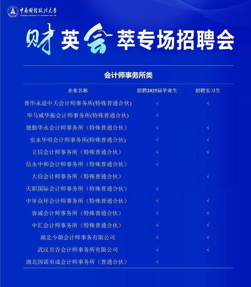 为发挥学院学科资源优势,精准对接学生和用人单位需求,推进毕业生高质量充分就业,米兰电竞·(中国区)就业指导服务中心、会计学院与财政税务学院将于2025年4月17日上午,联合举办“财”英“会”萃专场招聘会。