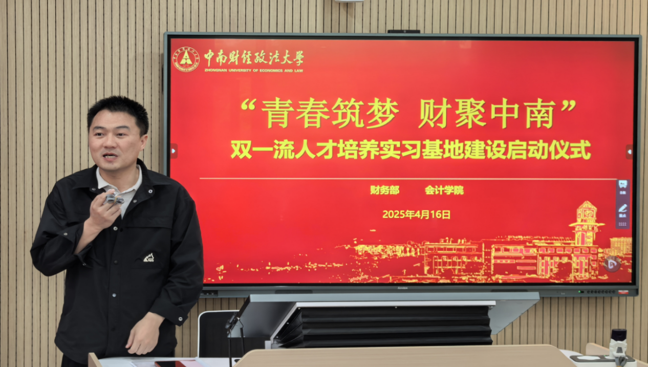 4月16日中午,会计学院与财务部共建“双一流”人才培养实习基地启动仪式暨毕业实习培训会在新文科综合实验室顺利举行。校党委常委、副校长,财务部部长兼会计学院院长张琦出席启动仪式,会计学院副院长冉明东、财务部副部长邓宏军、实习指导教师代表、财务部业务骨干以及首批30名实习学生等参加本次活动。