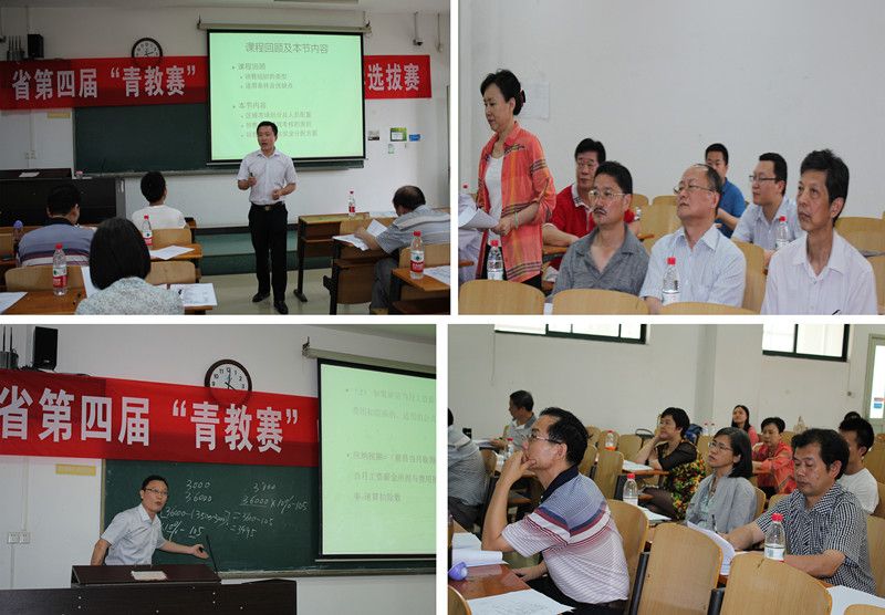 | 2014年5月29日至30日,湖北省第四届高校青年教师教学竞赛(简称“青教赛”)校内选拔赛在文波楼303教室举行,来自十四个教学单位的青年教师选手,经过激烈的角逐,经专家评委会现场评分并结合其教学设计和教学反思环节得分,集体讨论决定:推荐王宝顺、韦乐和崔灿三位青年教师代表我校参加2014年8月底由湖北省教育工会主办、华中师范大学协办的湖北省第四届高校“青教赛”。 本次省第四届高校“青教赛”校内选拔赛,得到了校内外有关领导、单位和广大青年教师的支持。各教学单位高度重视,积极组织本单位青年教师进行讲课竞赛,选拔推荐教学效果好、深受广大学生欢迎的优秀教师和青年才俊参加校内选拔;省教育工会主席马建才、副主席李斌,校党委副书记、工会主席杨志光亲临赛场指导,校工会积极组织,十多位专家教授现场认真听课、打分评选。 本次校内选拔赛分三个环节进行:一是依照省第四届高校“青教赛”规则,每位选手现场抽签参加本次选拔赛课程教材2/3内容的20个节段(每个节段为20分钟讲课内容)之一,上午8:30——11:30三个小时内,在切断互联网、严禁携带电子贮存产品的情况下(允许携带竞赛课程教材和配套参考书各一本),现场制作其教学设计(占20分)和课件(PPT)。二是当天下午按抽签顺序,每位选手进行20分钟课堂教学(占75分)。三是参赛选手课后从教学理念、教学方法和教学过程三方面着手,在给定的1小时内完成本次选拔赛600字以上的教学反思书面材料(占5分)。 |