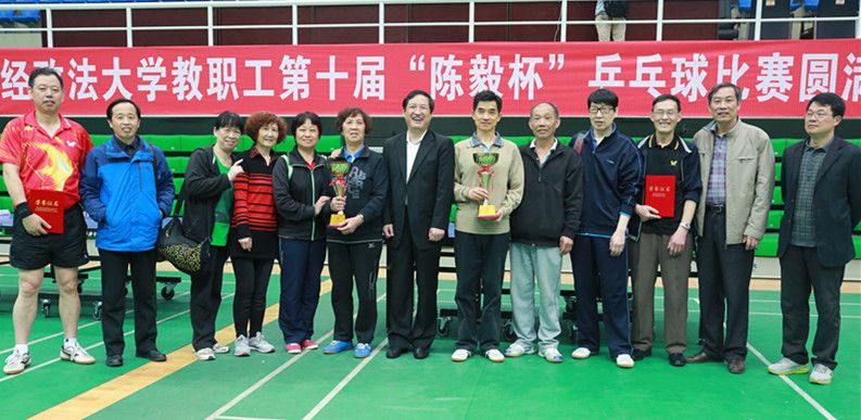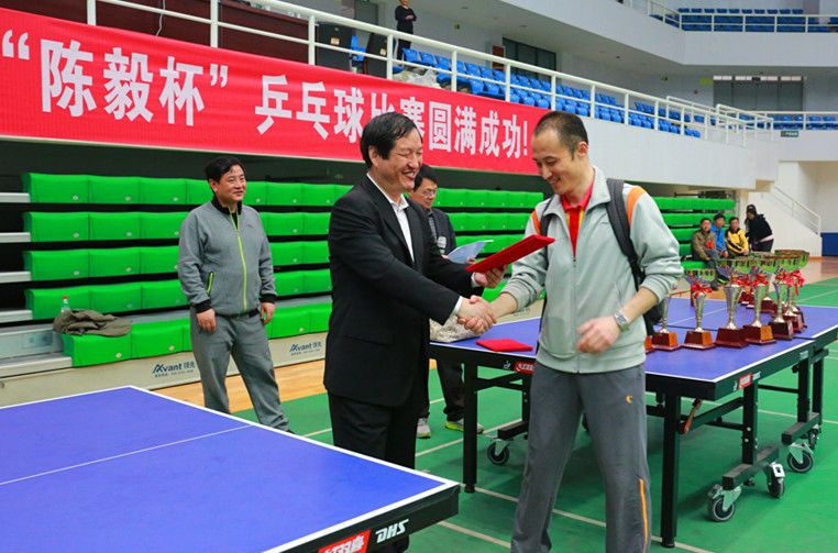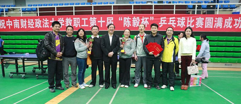 由学校工会主办,校体育部的协办的我校第十届“陈毅杯”乒乓球比赛2015年4月16日至19日在南湖校区艺体中心顺利进行。本次比赛在一定程度上推动了群众体育活动的开展,丰富了教职工的业余生活,同时增添了2015春季的亮丽色彩。 本次比赛包括男子团体、女子团体、男子单打、女子单打、男子双打、女子双打以及男女混合双打等七个比赛项目。共有300多名教职工踊跃报名,积极参与。比赛评分依据国家体育总局最新审定的《乒乓球比赛规程》。经过友好和激烈的角逐,校直机关二队获得男子团体冠军、离退休人员工作部队获得女子团体冠军;刑司学院胡先锋、外语学院吴于勤分别夺得男单、女单冠军校直机关代伟、钟勇获得男双冠军;后保部孟庆玲、外语学院吴于勤获得女双冠军,外语学院李宏顺、吴于勤获得混双冠军。 校党委副书记工会主席齐文远、常务副主席刘有湖、体育部主任沈传茂、工会副主席李贤勇、廖爱云为获奖者颁奖。 校党委副书记工会主席齐文远为获奖者颁奖 ![]()