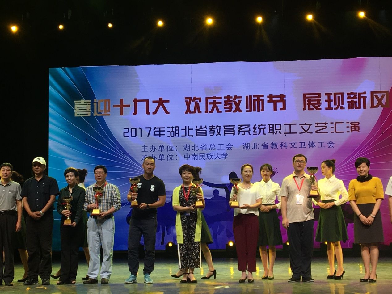2017年9月6日,湖北省总工会、湖北省教科文卫体工会主办了2017年度湖北省教育系统职工文艺汇演比赛。此次比赛是为了喜迎十九大、欢庆教师节、展现新风采,由中南民族大学承办。本届比赛得到湖北省内各单位的大力支持和关注,参赛队伍高达41支,比往届比赛规模更大,教职工参与的积极性更强。经过激烈的角逐,我校舞蹈情景剧类节目《大地之子》赢得广泛好评,荣获三等奖。