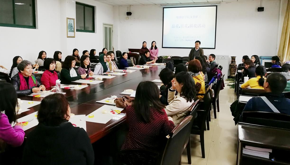 10月12日,我院工会女教职工特色活动之“品花·赏花·插花”在文波楼402会议室开展。学院近60名女教职工参加,两位外籍教工沙拉和罗丹思也受到吸引,积极报名参加,王革院长、余启军书记、院工会主席伍施乐副书记、雷鸣副院长、王娜副院长、胡惮副院长莅临现场支持,为女工创意插花活动加油打气。余启军书记代表学院领导班子表达了对女教职工活动热情的感动和感谢,王革院长赞扬了工会同志们的辛苦准备,并预祝活动圆满成功。