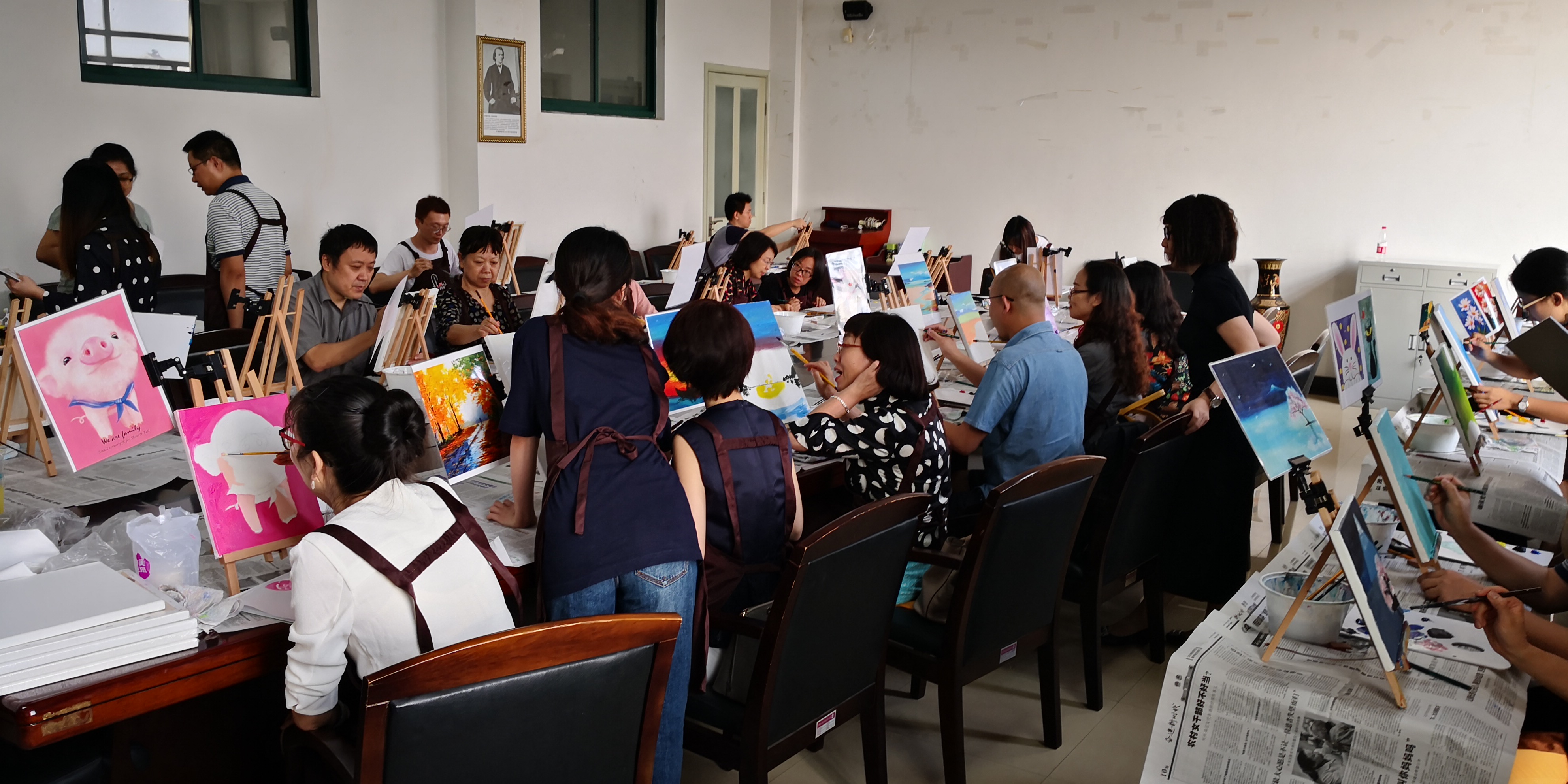 (通讯员 王博)为丰富教工的业余文化生活,提升艺术修养,搭建职工学习进步、展示自我的平台,欢度教师节,9月13日下午4点,外国语学院工会在文波楼402会议室开展绘画研习会活动,全院教职工热烈响应,积极参与。学院党委书记余启军等领导莅临现场,与众多教工一起度过了一个愉快、欢乐的下午。