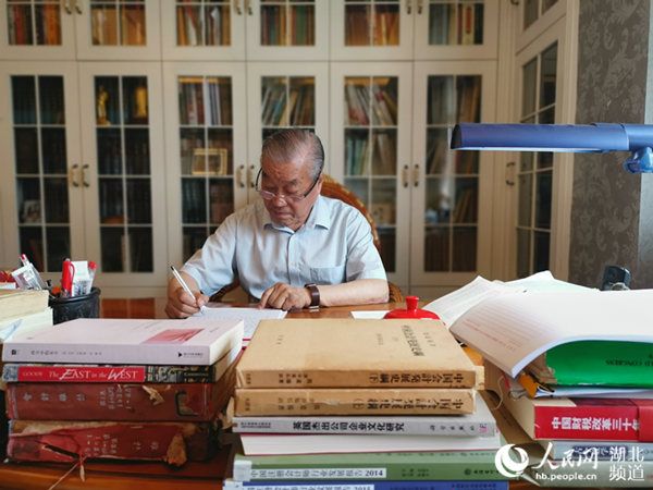他是一位老人,更是一名病人,有30年糖尿病史,每天早晚各一把药,从早到晚打4针胰岛素。2005年,他还得过脑梗阻,最严重的时候,上厕所都需要几个人抬。2007年在南疆旅行因高烧陷入昏迷,紧急抢救几个小时得幸醒来;2012年因跌倒造成左手骨折,2013年又跌倒导致左脚骨折。每次身体出现严重状况,郭道扬教授内心都会祈求:老天啊,请再给我几年时间,让我写完会计史。几乎每一来访者都亲眼见过郭老带着泪光,吐露沧桑的心声:我最担心一觉睡去早上醒不过来了。于是,他决定与病魔抗争,与时间赛跑,彻底闭关:从2011年开始,每天坚持写作11个小时,早上、下午各4个小时,晚上3个小时。没有节假日,没有春节,2016年起,他还取消了每年2次住院治病的安排。就连锻炼也由下楼散步改成在家露台转圈,因为郭老害怕一出门就会碰到熟人,热情询问他的近况,一聊就是半小时,会占用太多时间。所有这一切,只为跟时间赛跑, “我每天必须完成到规定编码页数才睡觉,因为害怕自己哪天身体出问题,研究就停止了”。在郭道扬的书房里,整整齐齐地摞放着一袋袋手稿。他感叹,5卷本一共300万字,而自己从初稿到誊清稿,远远不止写下这么多字。其中,光是导论就先后写了22稿。而他写完了多少支中性笔,已无法数清。