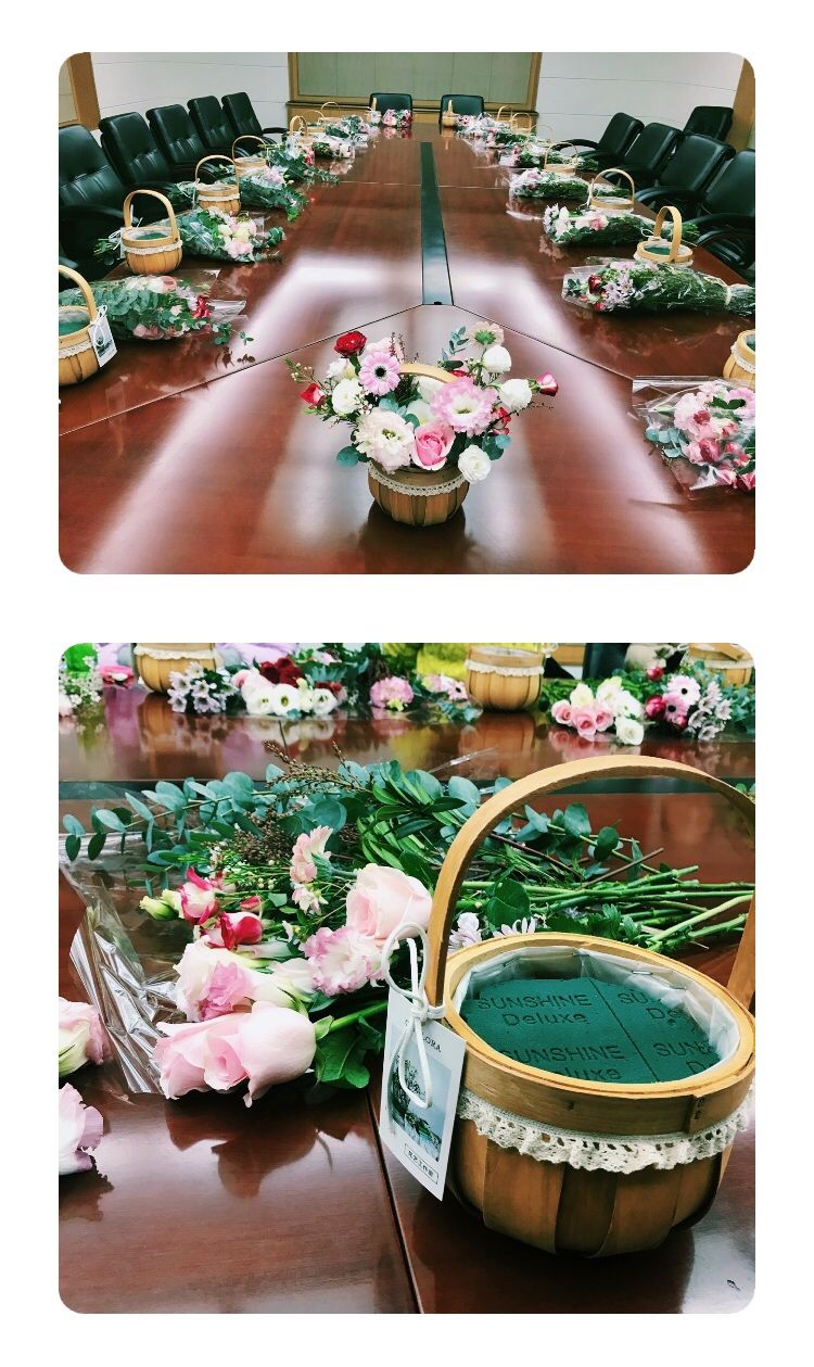 会议伊始,花艺老师以鲜花为材,将本次准备的9种鲜花的种类、习性、插花技巧娓娓道来。伴随着轻音乐,大家边听讲解,边动手,兴致勃勃的开始个人创作。