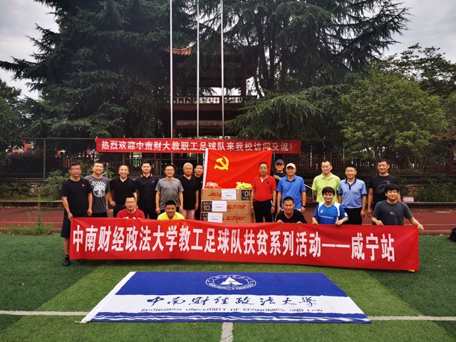 咸宁站足球扶贫活动得到了各方的一致好评,既提高了教职工足球队的凝聚力,又为加强和发挥学校与广大校友的联系和纽带作用打造了平台,更为贫困地区教育做了实事。很多队员深有感触,纷纷表示希望能继续参加下一站活动。此次赴咸宁足球捐赠和交流活动是校教工足球队精准扶贫系列活动和党建活动相结合的一次大胆创新和有益尝试。该计划诞生于今年六月中旬校教工足球队部分队员在训练结束后关于优秀公民素质培养和校园足球教育的聊天式讨论。从事足球教育并拥有多年校园足球裁判经验的教育部大体联足球“金哨”、学校体育课部刘柏青老师提议,教工足球队可以通过向贫困地区中小学捐赠足球训练装备、开展足球示范课、举办足球教练员培训班等多种方式,将教工党建活动和精准扶贫结合起来,为推广贫困地区中小学校园足球教育做点实事。刘老师的提议立刻引起了队员们的极大兴趣,大家一致认同开展足球运动对增强青少年体质、培养正确的胜负观念、竞争意识、团队责任意识和协作精神具有重要意义。大家群策群力,一致决定举办学校教工足球队精准扶贫系列活动。首站活动选择了学校精准扶贫对口单位所在的通城县和同在咸宁市的崇阳县。在学校精准扶贫驻村工作队负责人、红石村第一书记笪宁、原崇阳县挂职副县长金融学院董志华副教授的积极沟通协调下,受捐赠学校对接和捐赠活动安排等工作细节很快得到了落实。三十四位教工队员在捐助倡议发出后不到一小时内,积极响应,累计捐出爱心款一万余元,所有款项全部用于购买足球、标志桶、分队服等训练装备。为了不给当地政府增加接待负担,活动当天的所有费用包括餐费、水费等,全部由教工足球队成员自行承担。