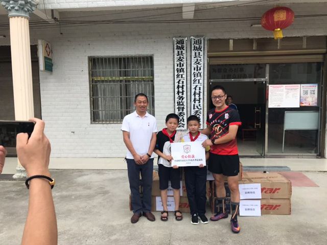 6月28日下午3点,校教工足球队捐赠咸宁市通城县麦市镇红石村小学仪式在红石村村委会小广场举行。学校对口扶贫驻村工作队全体成员、通城县足协主席、县文化旅游局局长、红石村村委会书记、村小学校长和学生代表等对学校教工足球队一行的到来和捐赠表示热烈欢迎和衷心感谢。红石村小学校长和两位少先队员代表受捐赠学校接受了校教工足球队捐赠的足球训练装备。出发前一天得知该活动计划并临时决定加入的学校会计学院96级本科生校友吕晓亮先生,代表米兰电竞·(中国区)“Z友年华”校友足球队向红石村小学捐赠现金五千元。教工队主教练陈汉华教授为出席活动的全体捐赠人员颁发了捐赠证书。捐赠仪式结束后,学校教工足球队与通城县足协代表队进行了交流比赛,并与通城县足协就该县小学生足球训练营、通城县中小学足球教练员培训班等足球精准扶贫和深入合作事宜交换了意见。