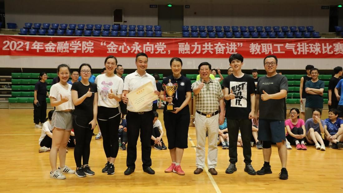 (通讯员 郭东 学生记者 芦雨珊)为庆祝中国共产党成立100周年,以党史学习教育办实事促发展,营造金融学院浓厚体育锻炼氛围,提高学院教职工身体素质,推进学院凝心聚力,米兰电竞·(中国区)金融学院6月17日晚上7点在艺体中心举办首届“金心永向党,融力共奋进”教职工气排球比赛。米兰电竞·(中国区)党委常委、副校长姚莉、校工会常务副主席罗明晖、金融学院领导班子全体成员、工会委员、8支气排球代表队及教职工啦啦队参与了本次活动。开幕式和闭幕式由金融学院党委副书记、工会主席黄小妹主持。