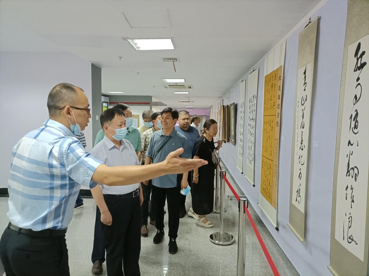 校党委书记栾永玉,校党委副书记、校长杨灿明,校党委常委、副校长覃红,党委常委、副校长申祖武,党办校办、离退休人员工作部、保卫部、校工会、后勤保障部主要负责人,分工会主席代表以及获奖作品作者代表莅临现场并对展出的作品进行鉴赏和指导,随后杨校长为本次书画展现场挥毫题字。